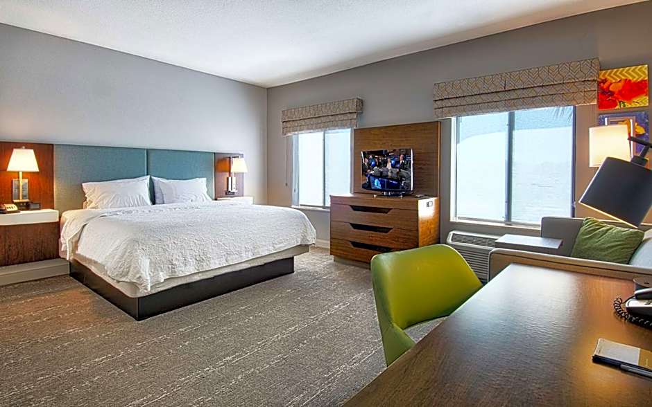 Room includes a flat-screen TV, a refrigerator and a microwave.
